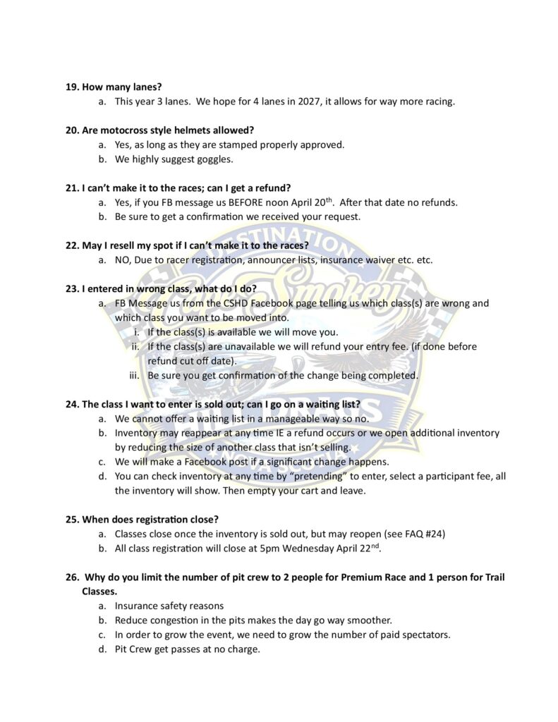 We expect Race Registration and Spectator Passes will open 12:45pm Wednesday March 25th.